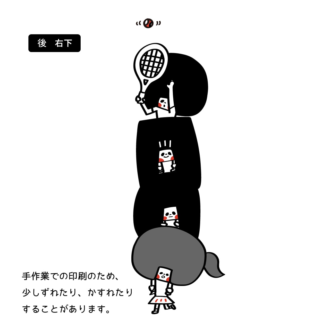 ※強い摩擦、鋭利なものでひっかく、工業用洗剤での洗濯、高温接触などによりプリントが剥がれる場合がございますのでご注意下さい