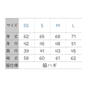 SSサイズ 身丈 62cm/身幅 42cm/肩幅 39cm/袖丈 58cm